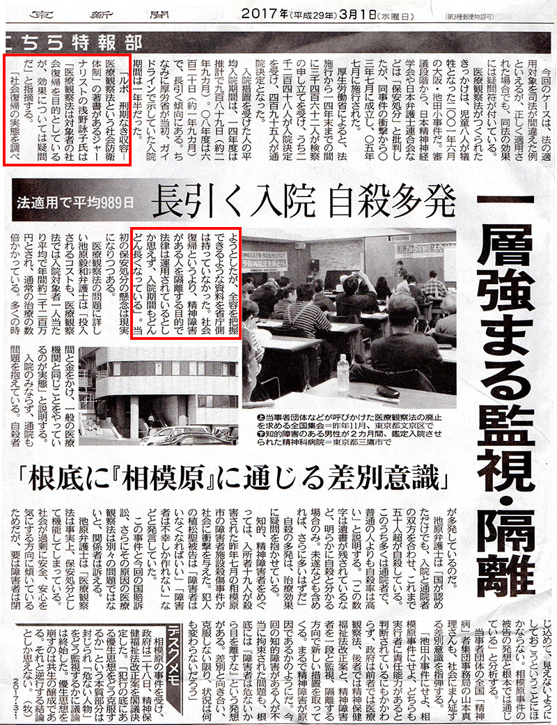 東京新聞2017年3月1日付「こちら特報部」